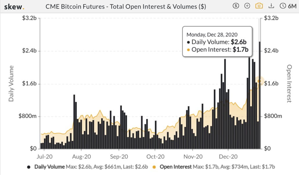 Data fetched by Skew showed that OI on the CME Bitcoin Futures reached $2.6 billion, accompanied by the record-setting daily volume of $1.7 billion. That pointed to a strengthening momentum ahead, especially among institutional traders that rely on regulated exchanges like CME to gain exposure in the Bitcoin market.