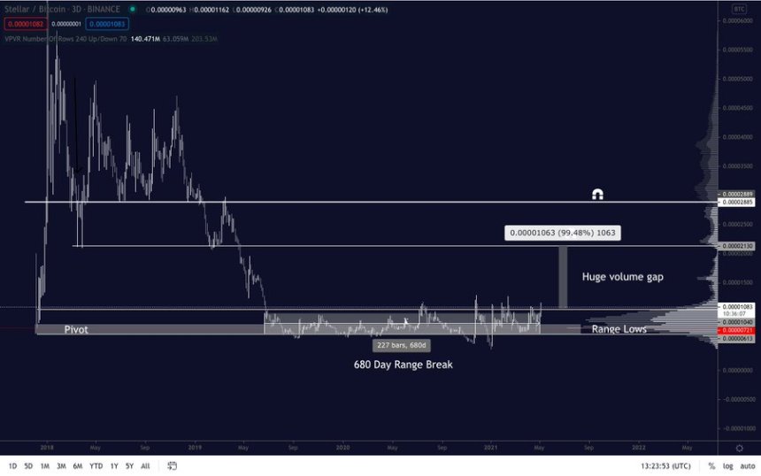 Trader Pentoshi took the opportunity to take a long position. The operator believes XLM’s rally has gone unnoticed after it managed to break out of its 680-day range. Pentoshi added the following: