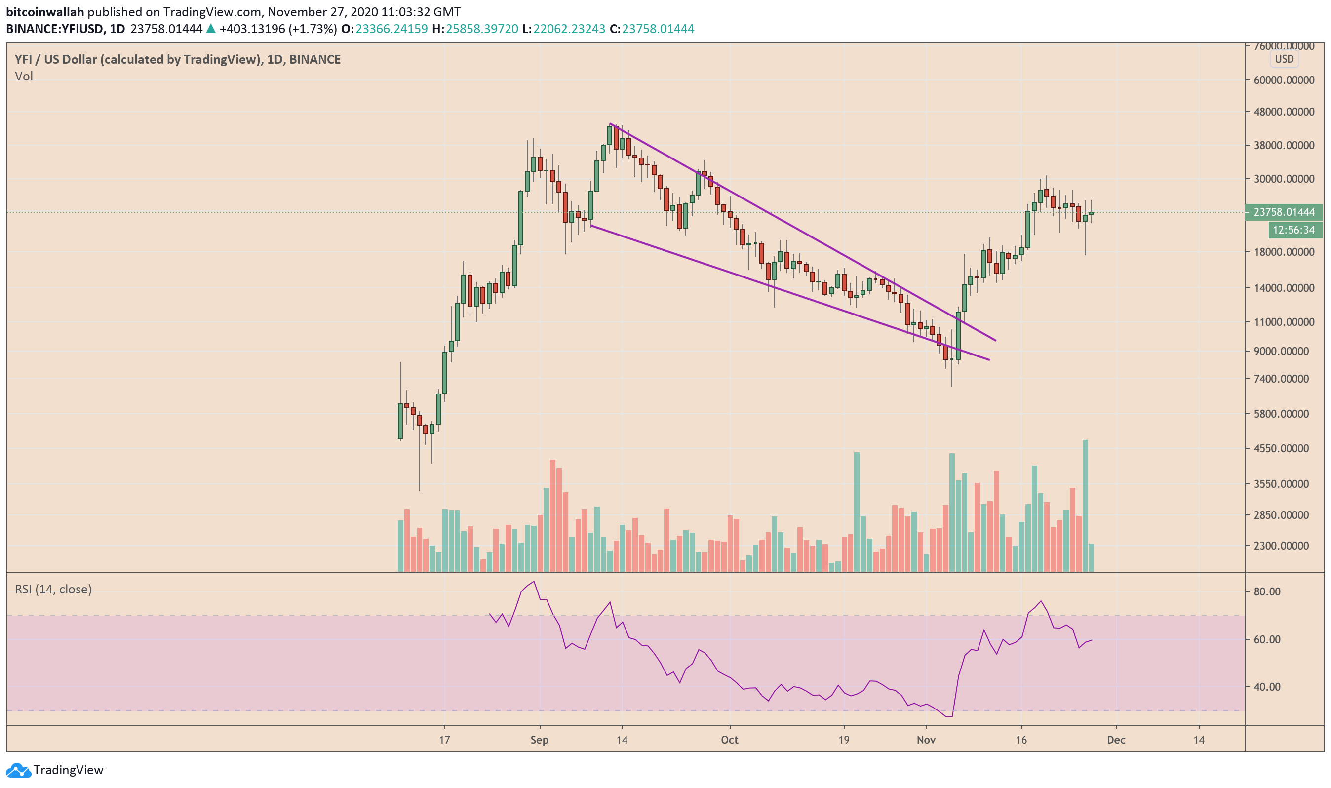 The decentralized finance token formed an intraday high at $25,858 in the early trading session in London. At its weekly low, the YFI/USD exchange rate was as low as $17,605, according to data fetched from the Binance crypto exchange.