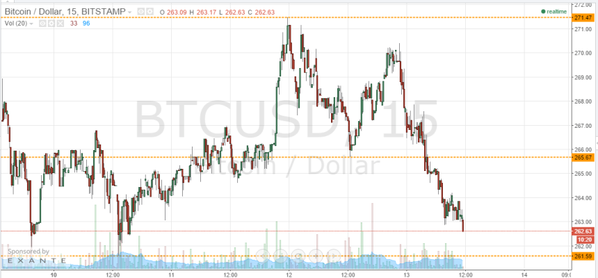 As you see, overnight action marked a return to the volatility we saw over the weekend in the bitcoin price. Overnight, we broke through 265.67, and are now trading mid-range between the aforementioned level (which serves as in term resistance) and in term support at 261.59. These are the two levels that we will be keeping an eye on during today’s session.