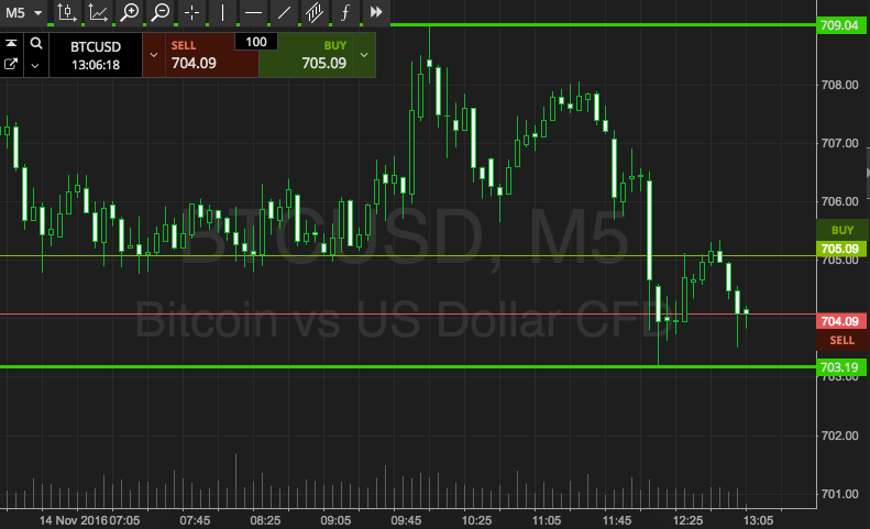 As the chart shows, we are looking at support to the downside at 703 and resistance to the upside at 709. We’re going for a breakout approach only right now, so if price closes above resistance, we are going to get in long towards an immediate target of 715. A stop loss on this one at 707 defines risk.