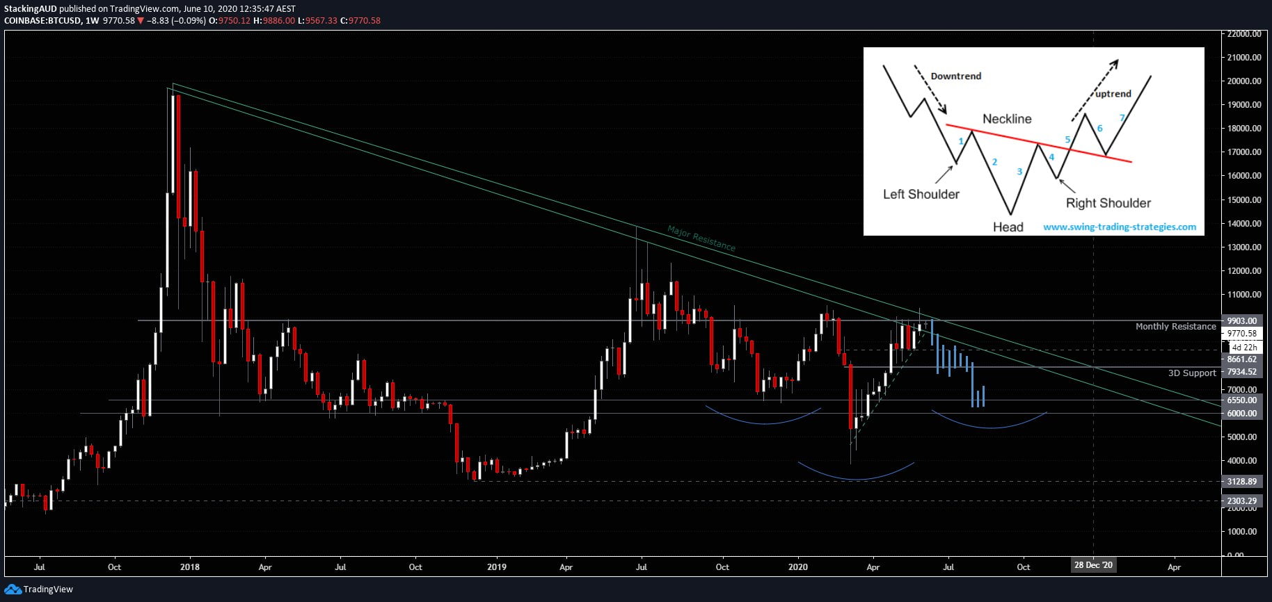 If it does visit its price region and finds significant support here, it is possible that it forms a massive inverse head and shoulders pattern that helps catapult it up to fresh all-time highs.