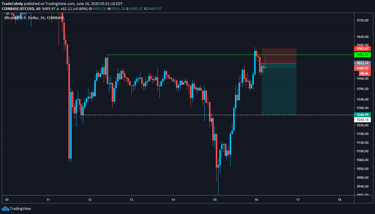 “BTC – I think there’s enough evidence to suggest that that was a run on a previous high that stopped me out. So I’m willing to try this trade again here,” he noted while pointing to the chart seen below, with a target in the lower-$9,000 region.
