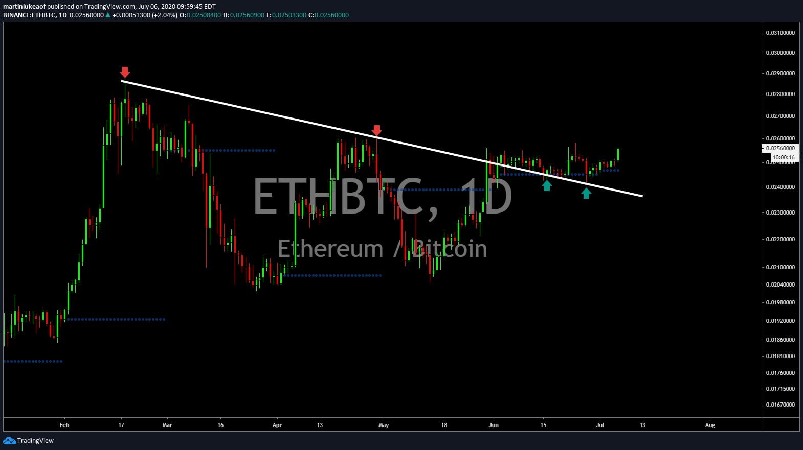 “ETH trying to move up after a sideways June. The narrative for bullish ETH action has been there (eth 2.0, deFi, EIP 1559) and the charts support that,” he said.