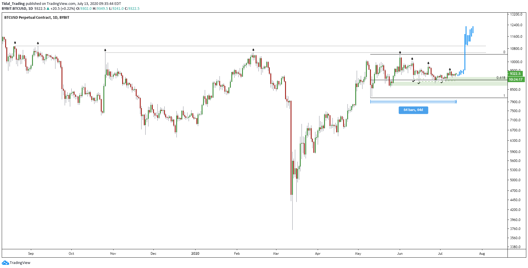 “Leaning bullish atm due to continuous failed selloffs into 1D demand & the 0.618 retracement of the current low & high, trapping shorts & sellers. Over 2 months now spent in this range, recent PA leaving a lot of overhead liquidity. I think we take that out next,” he explained.