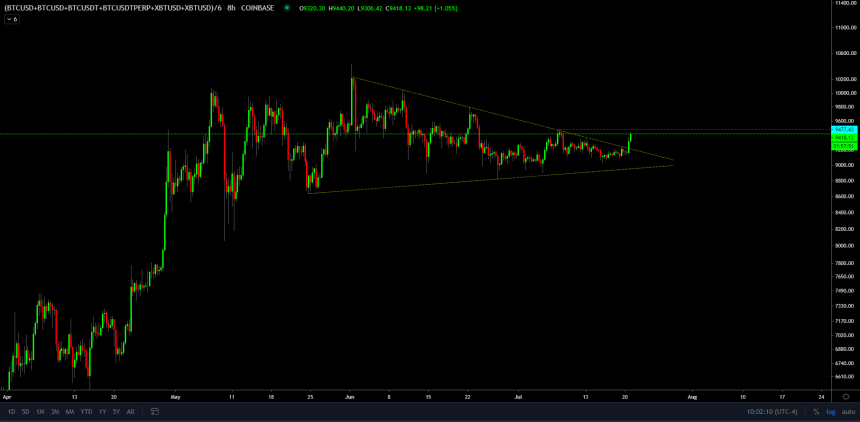 At the time of writing, Bitcoin is trading up just under 3% at its current price of $9,415.