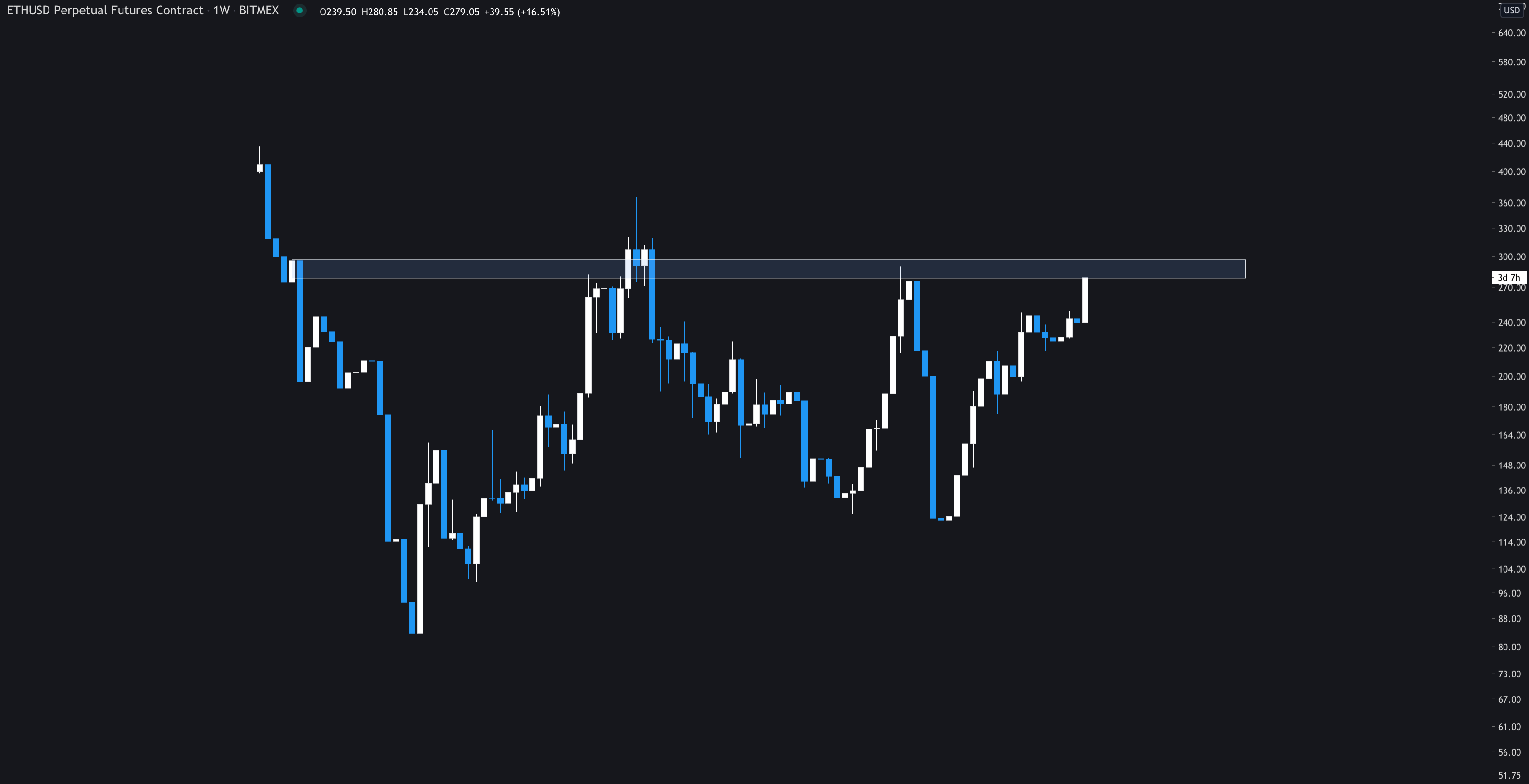 “I would argue, this is the most bullish HTF structure/candle we have seen in the past 2 years for ETH… Weekly close up here and I think $400/500 is highly likely.”