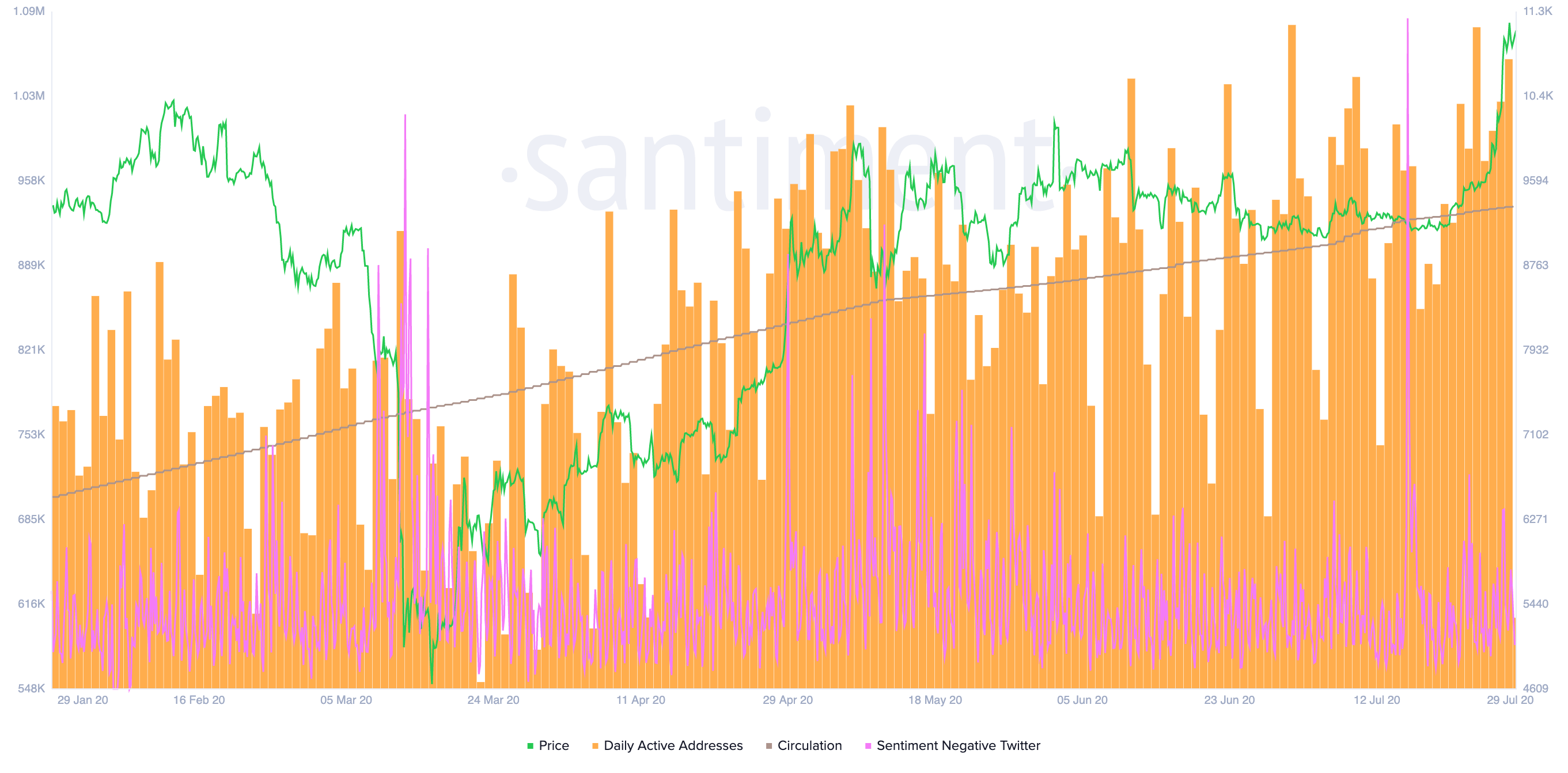 Because positive sentiment remains in-line with where it has been in recent weeks and has yet to see any abnormal spike, this could be a sign that this rally has fuel to extend further.