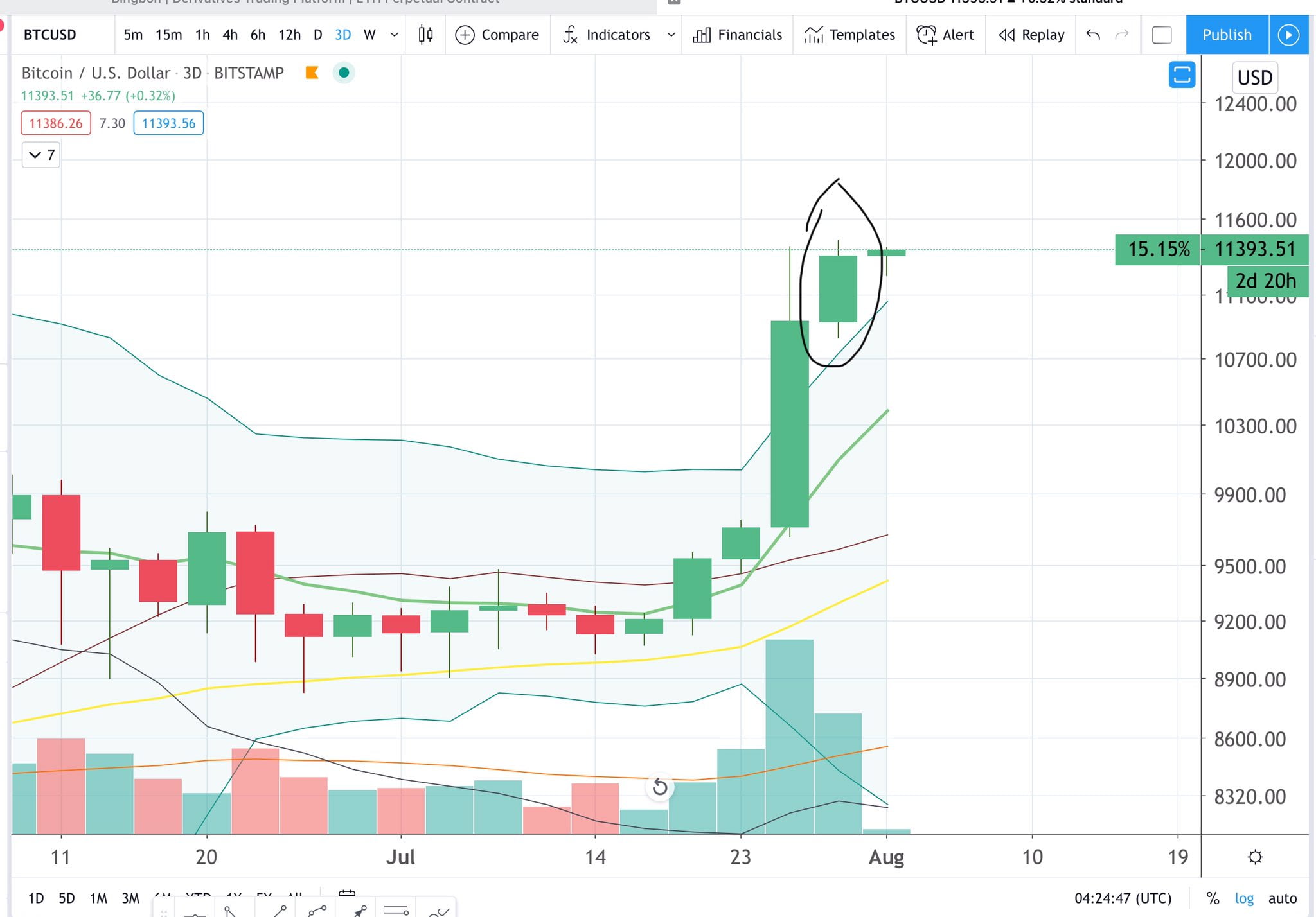 “Bitcoin 3 day candle just closed, and the entire range was transacted above the upper BB – the last time that happened was April 4th 2019, right around $5000 before we made that run to $14000,” he said.