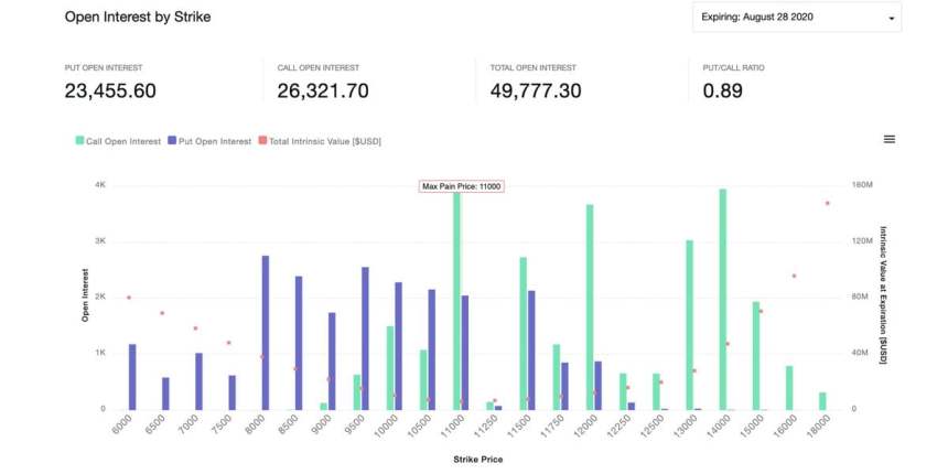 “Big options expiry this Friday 28 Aug 2020! 65k BTC options will expire this Friday with a notional value of > USD 740 million which represents approx. 37% of total market open interest (Deribit + CME + OKEX etc.).”