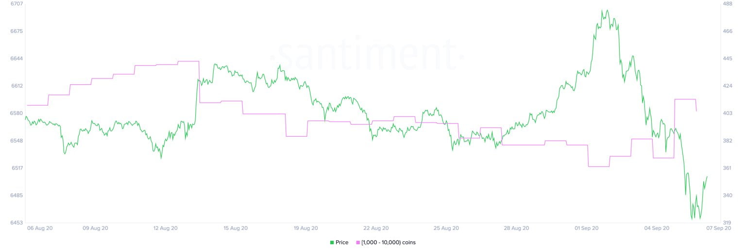 At least that is what the latest Santiment charts showed. The trading sentiment tool found that the number of wallets holding between 1,000 and 10,000 surged, while Ethereum prices were going down.
