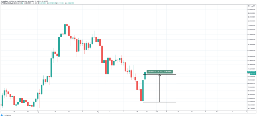 However, the seemingly unstoppable rocket ship that is Chainklink, may have only pulled back to refuel its jets. After a fall from the 2020 peak to the recent low of $7.50, representing an over 60% correction, the asset rallied over 30% yesterday.