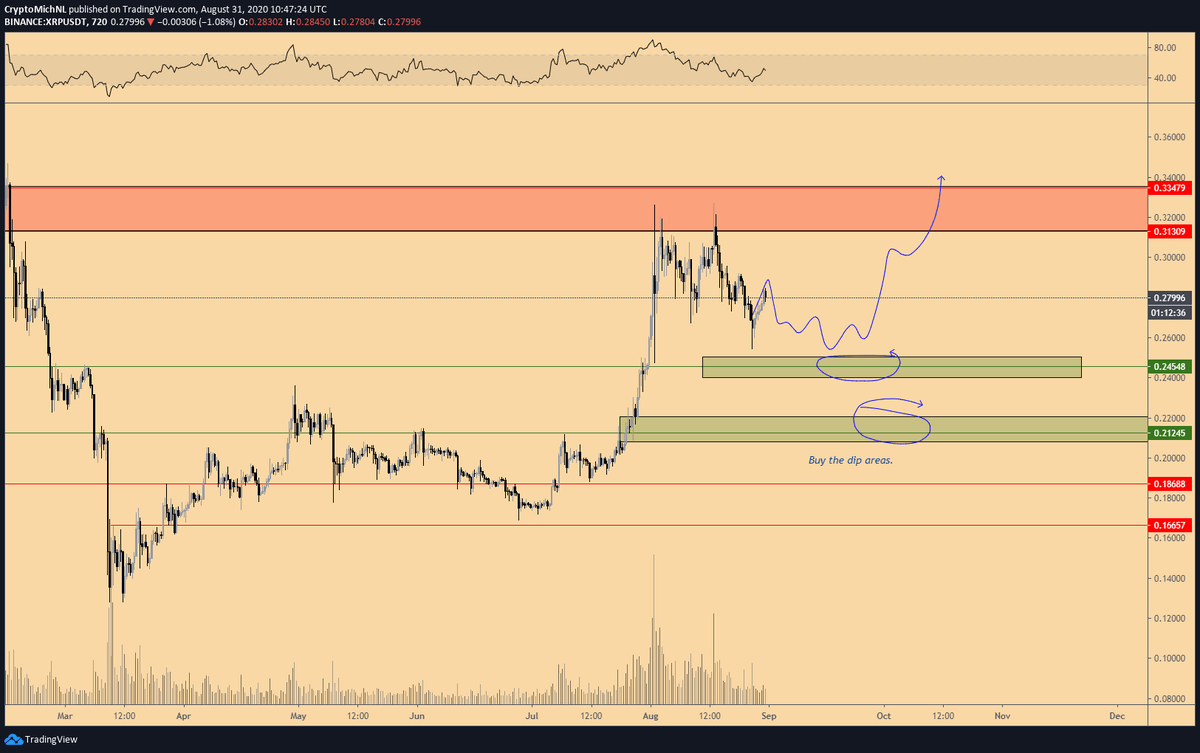 “XRP: Well, we’ve been saying these green zones for weeks now and we’ve got quite close. Patience pays. I think we’ll see some more consolidation before continuation on XRP. But yes, paying some attention.”
