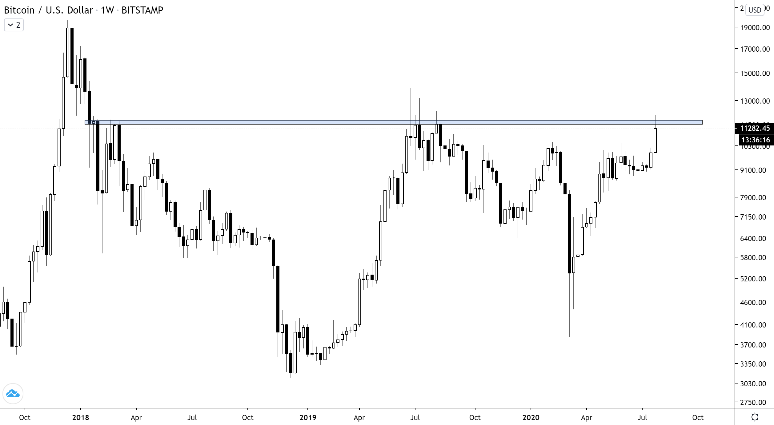 Another popular cryptocurrency analyst echoed the importance of this level, explaining that a weekly close above $11,500 would allow for further upside continuation.