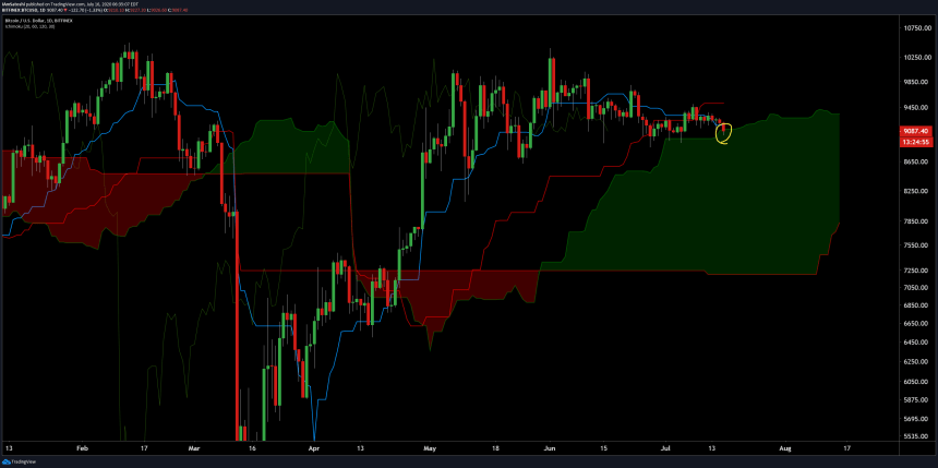 Josh Olszewicz – a popular cryptocurrency analyst on Twitter – explained that BTC has now entered its Ichimoku Cloud – opening the gates for a decline towards $7,000.