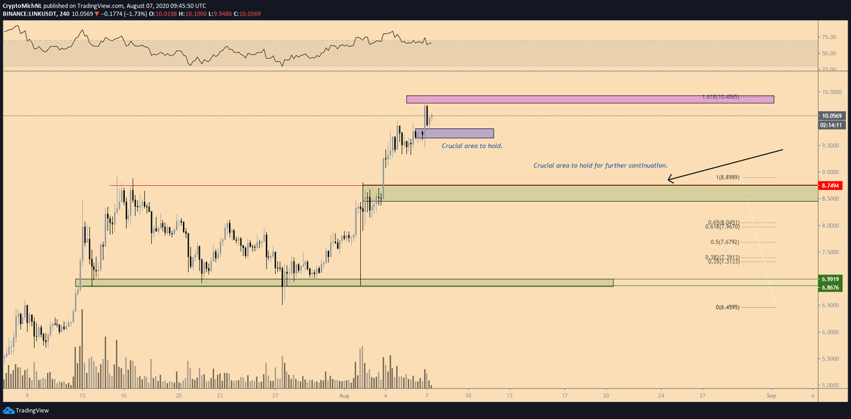 “Chainlink: Congratulations, target reached around the 1.618 Fibonacci level. What’s crucial to hold? $9.75 area. If that holds, the path is open towards $12-12.50. Otherwise I’ll be heavily interested around $8.70,” he noted.