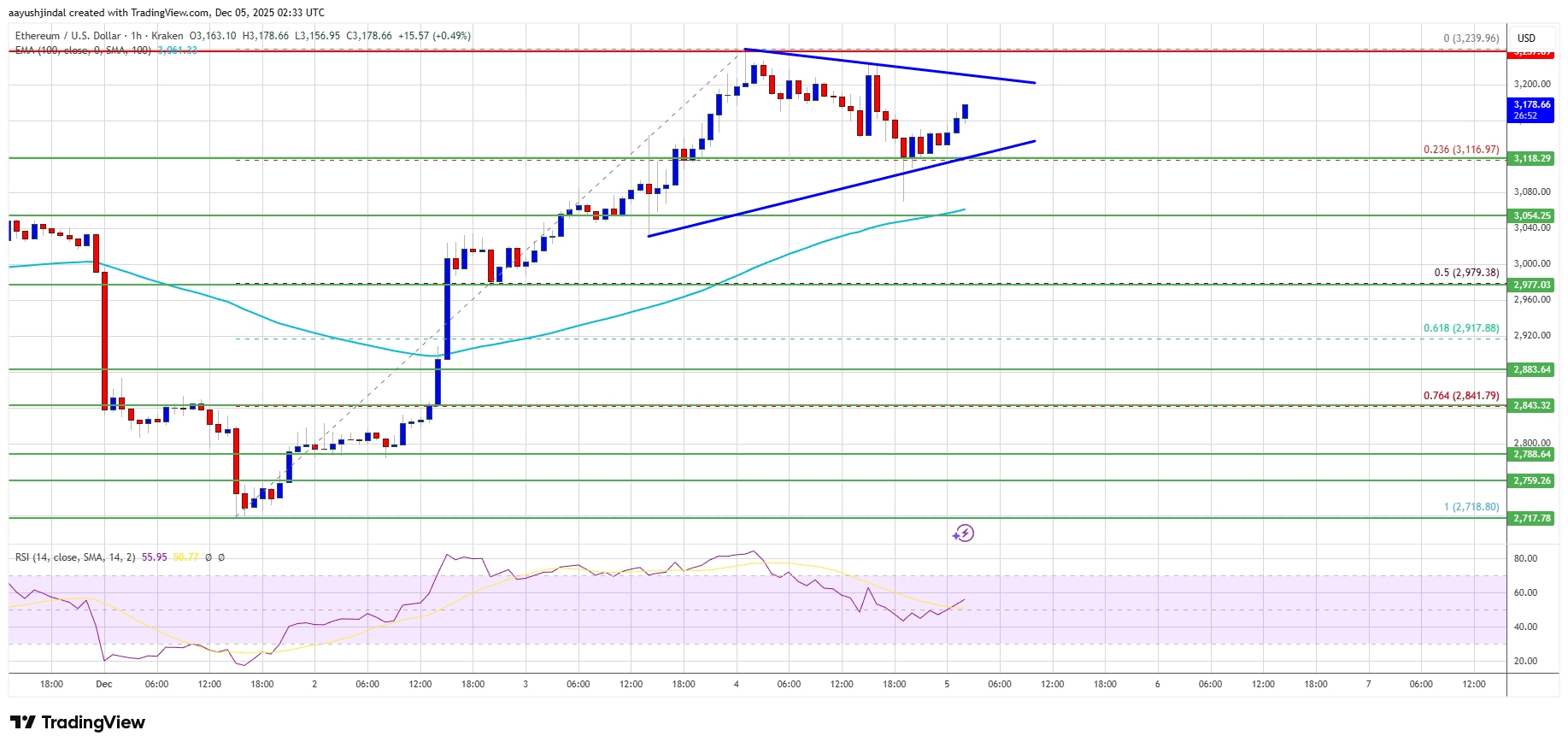 Ethereum price started a fresh increase above $3,200. ETH is now consolidating gains and might aim for more gains above $3,250.