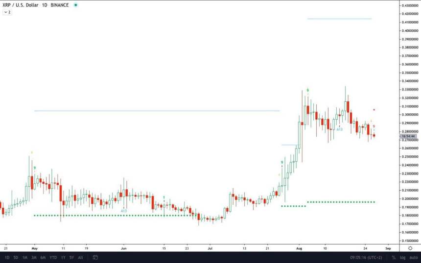 Like Bitcoin, XRP has faced a strong pullback over the past few days after peaking last week. As of this article’s writing, the leading altcoin is down 5% in the past 24 hours. XRP now trades for $0.265, which is below a number of pivotal technical resistances in the near term.