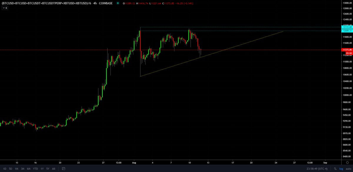 This pattern also comes as Bitcoin begins flashing some signs of overt strength due to its strong reaction to its support at roughly $11,200 that was tapped overnight.