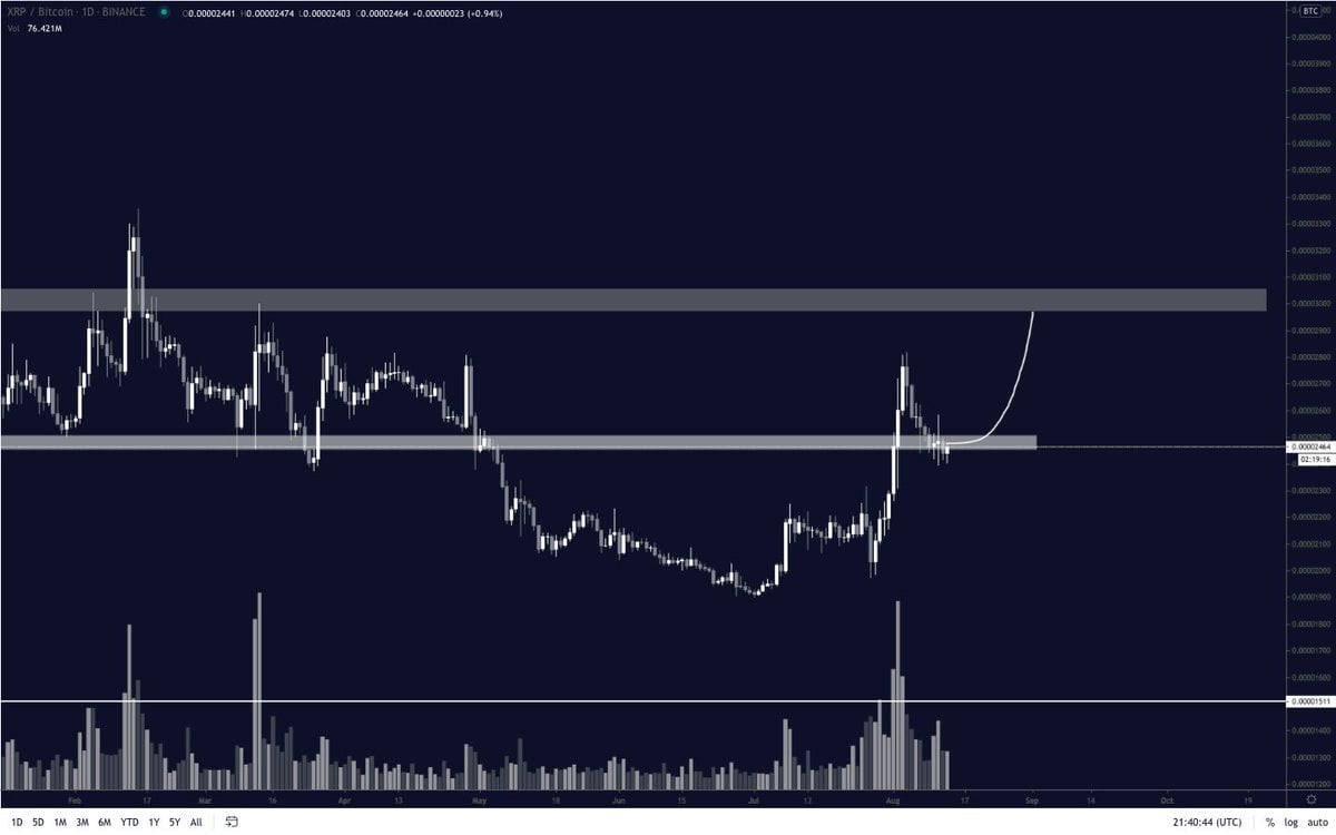 While looking towards XRP’s Bitcoin trading pair, analysts are also expecting upside.