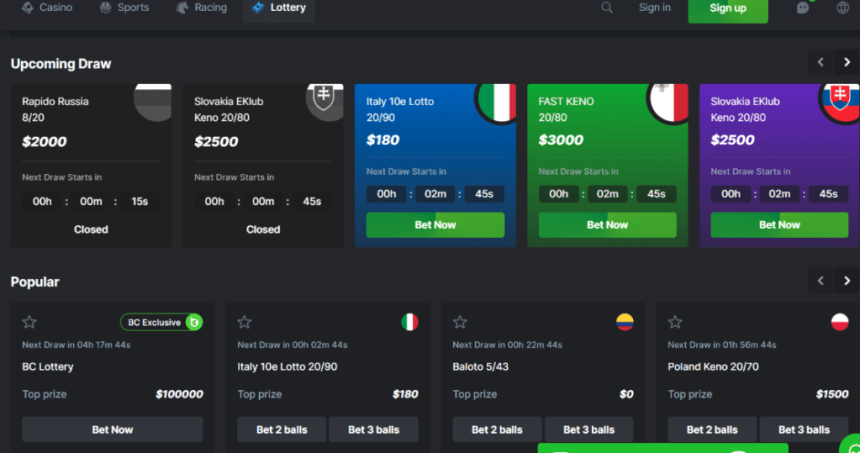 一些比特幣賭場網站提供彩票遊戲。我發現這些通常都有可驗證公平的保障。這表示彩票抽獎是由區塊鏈生成,確保結果公平且透明。