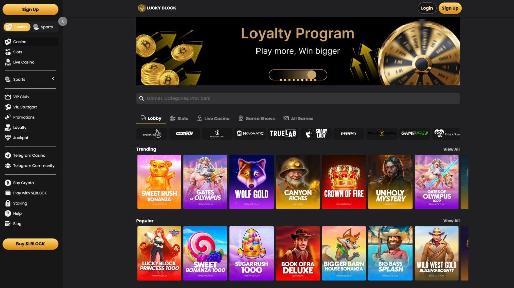 - Lucky Block – 高額玩家首選,專注老虎機與真人百家樂的頂級賭場