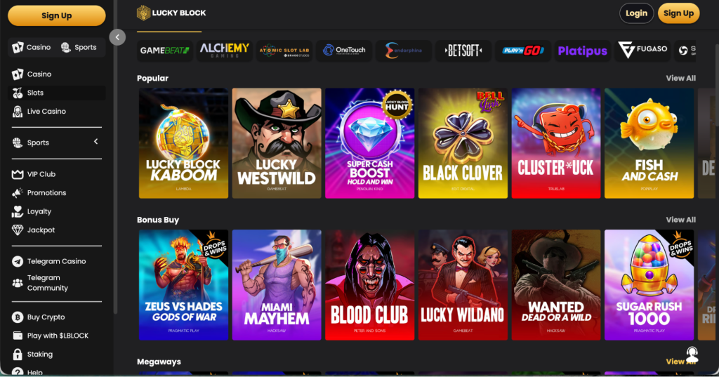 4. Lucky Block – منصة كازينو متكاملة مع آلاف من ألعاب الكازينو أون لاين