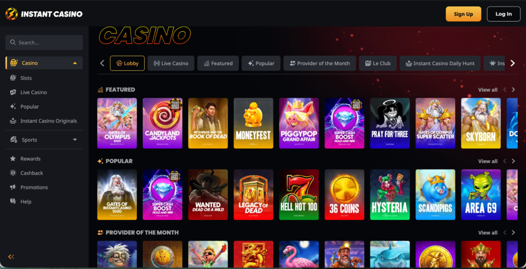 Instant Casino يبرر اسمه بجدارة كواحد من أسرع مواقع الكازينو اون لاين في السحب. يضم Instant Casino أكثر من 3000 لعبة من كبار المزودين، تشمل السلوتس الكلاسيكية والحديثة، ألعاب الطاولة المتنوعة، بالإضافة إلى قسم كازينو مُباشر مع عشرات الطاولات، ومنصة مُراهنات رياضية متكاملة.