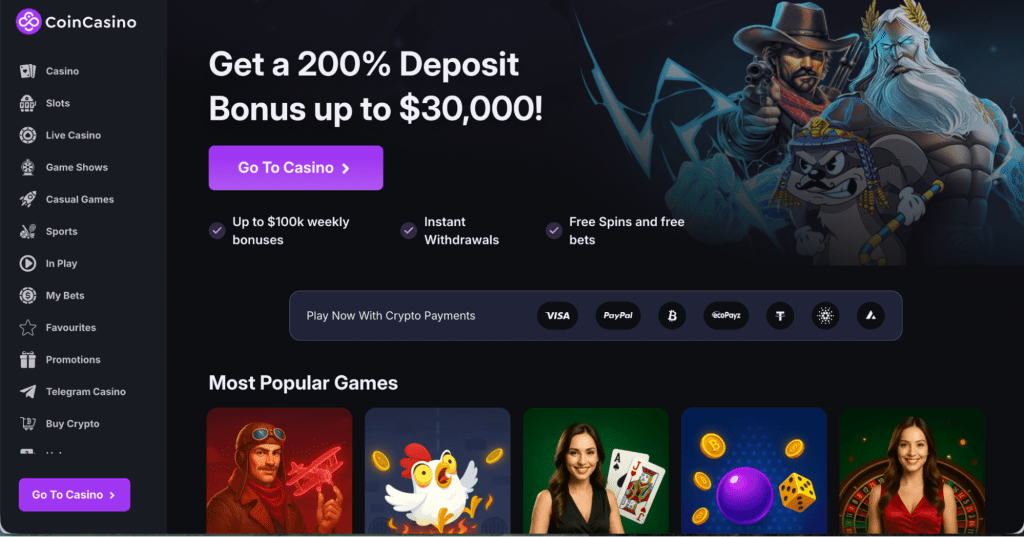 1. CoinCasino – منصة كازينو عملات مُشفرة رائدة بمدفوعات سريعة