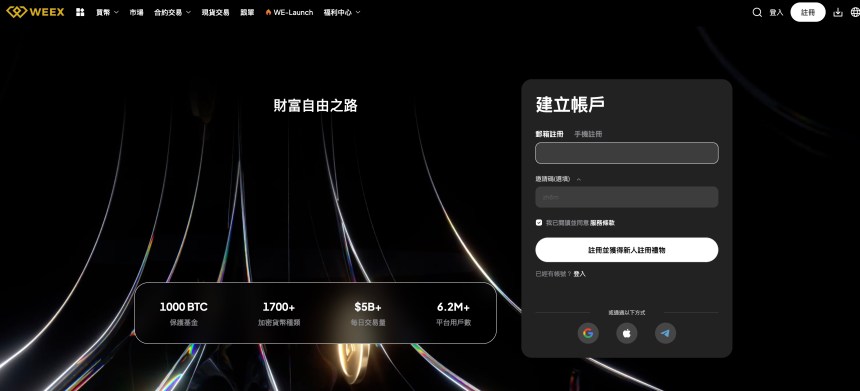 - Weex – 註冊即拿 30 USDT、最高 100 倍槓桿的期貨平台