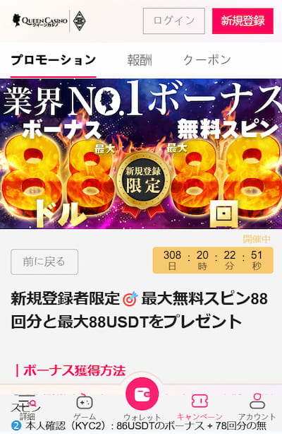アカウント登録が完了したら、次にプロモーションページを確認し、利用したいボーナスオファーを選択(または自動的に適用されることもあります)します。
