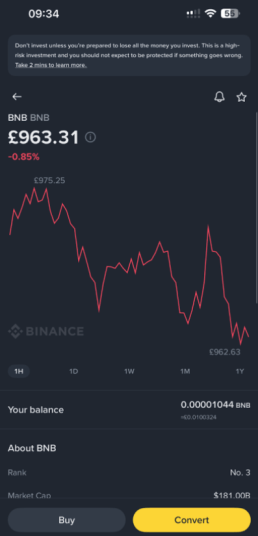 La differenza tra le due modalità è davvero notevole. In Lite mode, l’interfaccia è minimale: i prezzi sono facili da leggere, i pulsanti Buy e Convert sono ben visibili e praticamente dominano lo schermo. È perfetta se vuoi semplicemente acquistare al volo un po’ di BTC o BNB senza perderti tra mille funzioni.