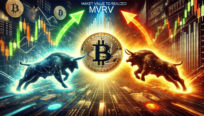 The MVRV Ratio is a popular indicator that, in short, keeps track of how the value held by the BTC investors as a whole (that is, the market cap) compares against the value that they initially put in (the realized cap). When the value of this metric is greater than 1, it means the average address on the network can be assumed to be holding a net profit right now. On the other hand, it being under the threshold suggests the dominance of loss in the market.