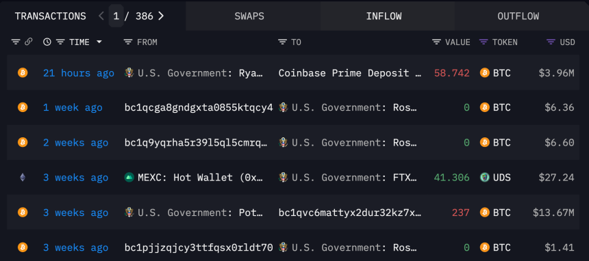 Speaking of sell pressure, blockchain analytics firm Arkham Intelligence recently revealed that the US government has transferred $3.96 million from the seized Bitcoin to Coinbase.