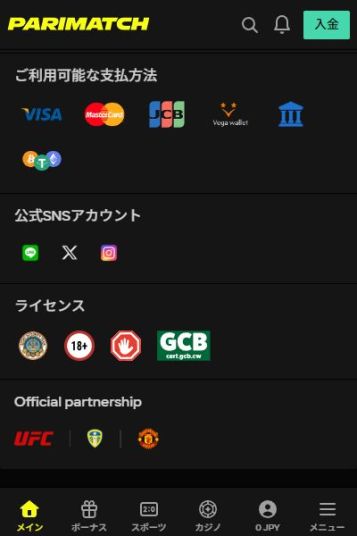 | パリマッチ(Parimatch) | JCB, Visa, Mastercard |