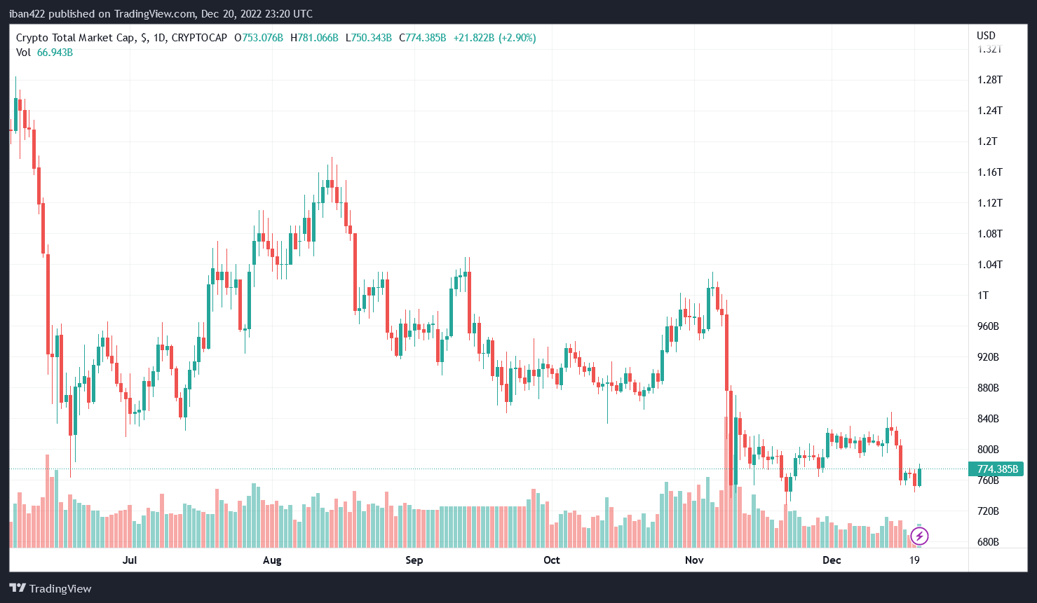 Crypto total market cap stands at $770 billion on daily chart. Source: TradingView
