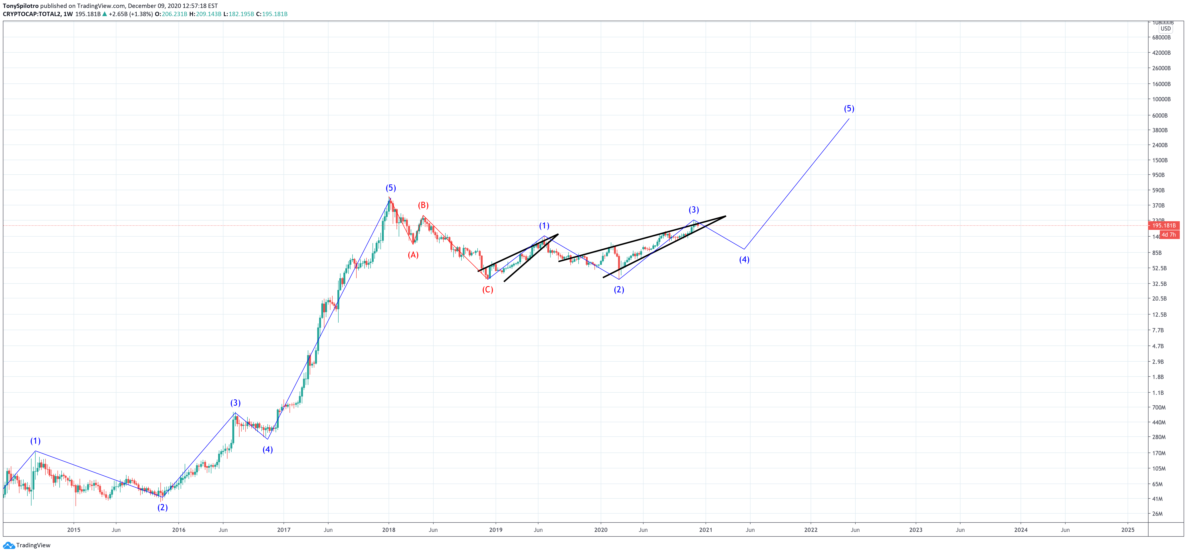 Altcoins could be ending the third wave and beginning the fourth, corrective subwave | Source: CRYPTOCAP-TOTAL2 on TradingView.com
