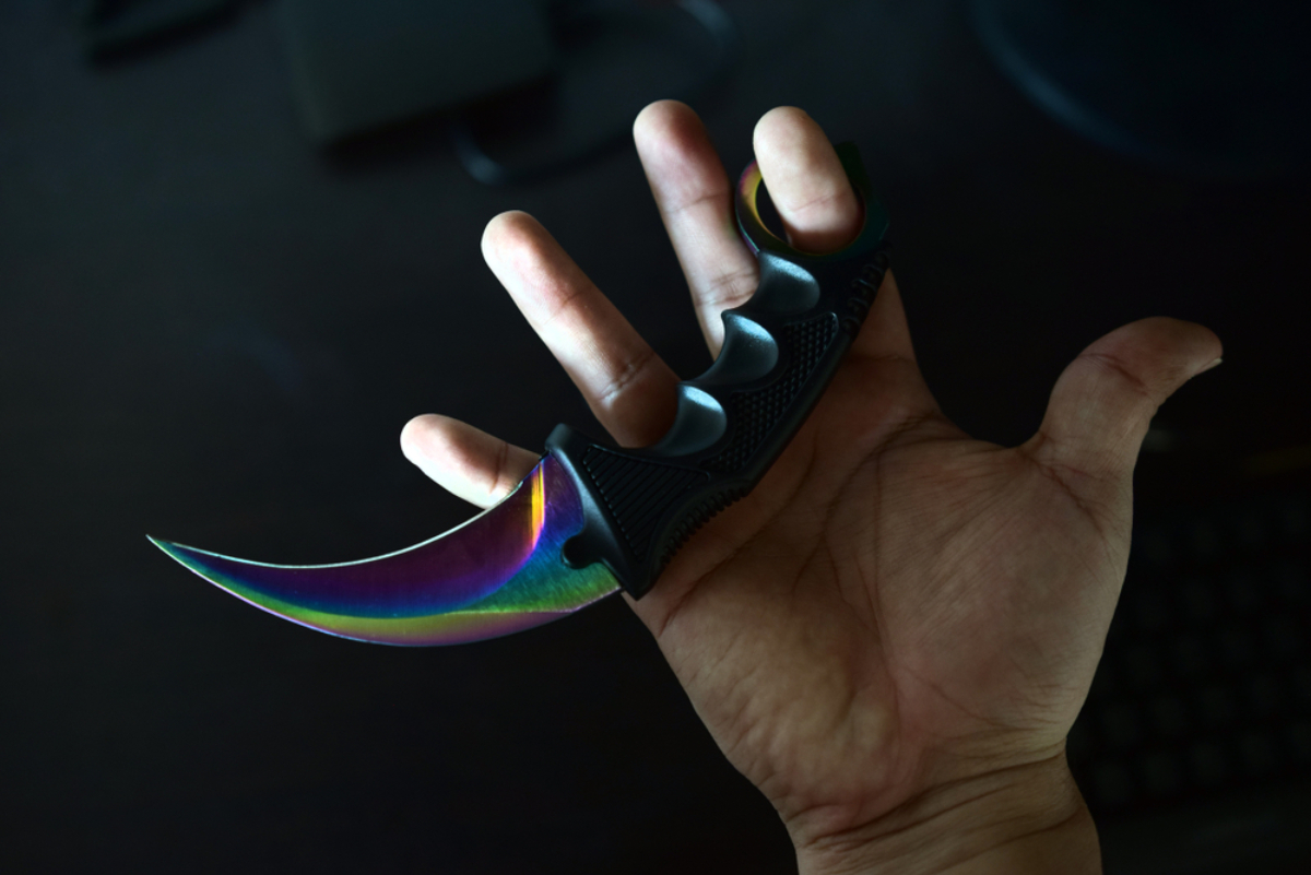 Absolútny vrchol rebríčka patrí Karambitu | Case Hardened (Pattern #387) – najslávnejšiemu a najdrahšiemu skinu v celej histórii Counter-Strike. Tento nožík má takmer úplne modrú čepeľ na hernej strane, čo z neho robí dokonalý Blue Gem.