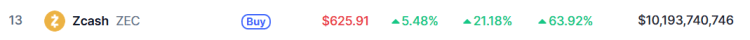 In diesem Zeitraum hat Zcash seinen Wert um das 18-fache gesteigert und raste von $34,59 auf mittlerweile $614,22. Diese Kursexplosion ist umso beeindruckender, als sie in einem Umfeld stattfindet, das von tiefster Depression geprägt ist.