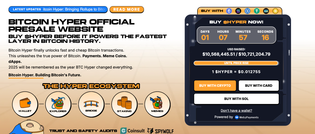 Dass die Idee ankommt, zeigt die hohe Nachfrage nach dem dazugehörigen $HYPER-Token. Anleger haben bereits über 10,5 Millionen Dollar investiert, um von Anfang an dabei zu sein, obwohl $HYPER derzeit noch im Vorverkauf erhältlich ist. Hier ergibt sich für Investoren also eine einmalige Gelegenheit, in einer frühen Phase in ein Projekt einzusteigen, das den Markt für immer verändern könnte. Analysten vermuten, dass Bitcoin Hyper schnell zu einem Milliarden Dollar Altcoin aufsteigen könnte, was für frühe Käufer extrem hohe Renditen bedeuten würde.
