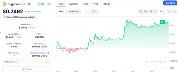 1 $MAXI kostet $0.0002565, allerdings wird der Preis bald steigen. Der Kauf ist mit Krypto und Karte auf der Webseite von Maxi Doge möglich.