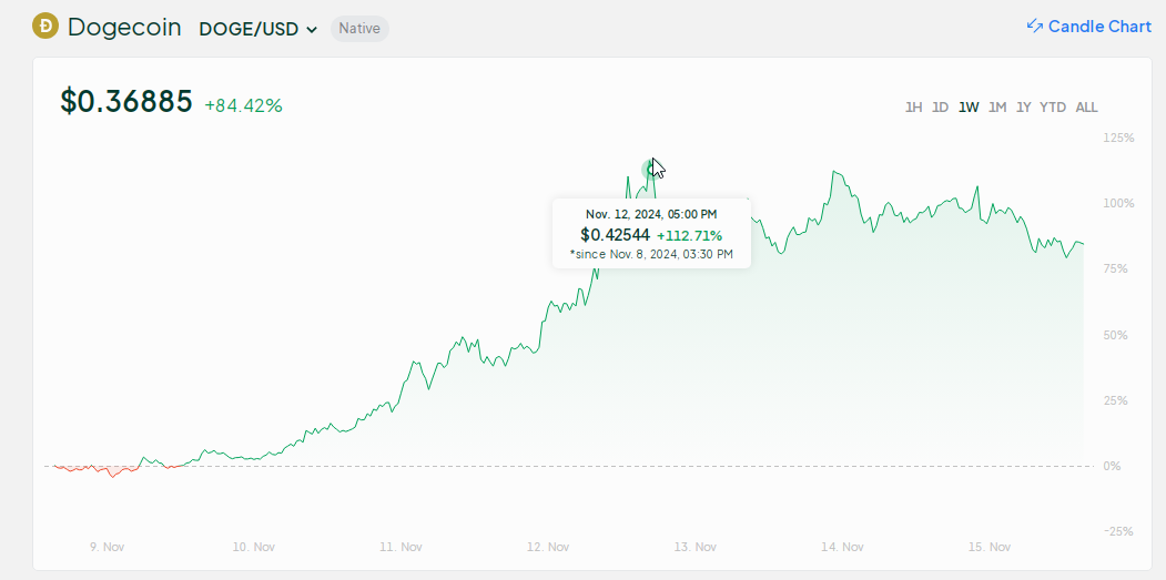 Dogecoin (DOGE) has become one of the most popular cryptocurrencies after a 112% growth in the past week. DOGE leads another meme currency craze with this move, proving it can still steal the show and top the crypto scene.