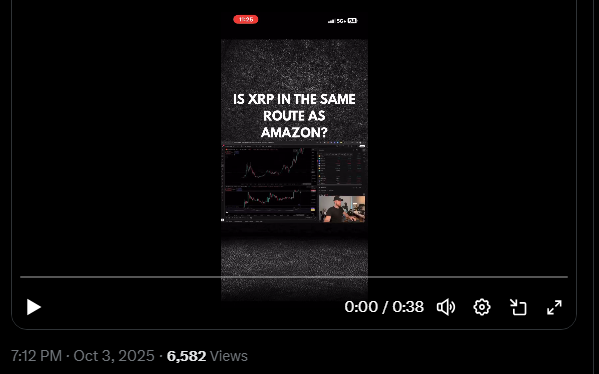 Según un nuevo análisis y debate comunitario, la reciente acción de precio de XRP ha reavivado una comparación de larga data con la lenta escalada de Amazon antes de un importante repunte.