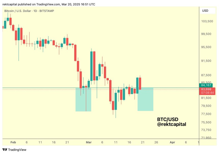Por su parte, el analista de criptomonedas Rekt Capital destacó que Bitcoin está volviendo a probar el nivel clave de soporte en $84,000. Mantener exitosamente este nivel podría llevar a BTC a desafiar la resistencia de $94,000, allanando potencialmente el camino hacia un nuevo ATH. El analista indicó: