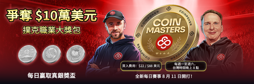 加密貨幣撲克平台 CoinPoker 宣布,其旗艦賽事系列《CoinMasters 金幣大師賽》正式進軍亞洲市場,將推出兩場全新賽事,特別針對亞洲地區的晚間黃金時段設計。