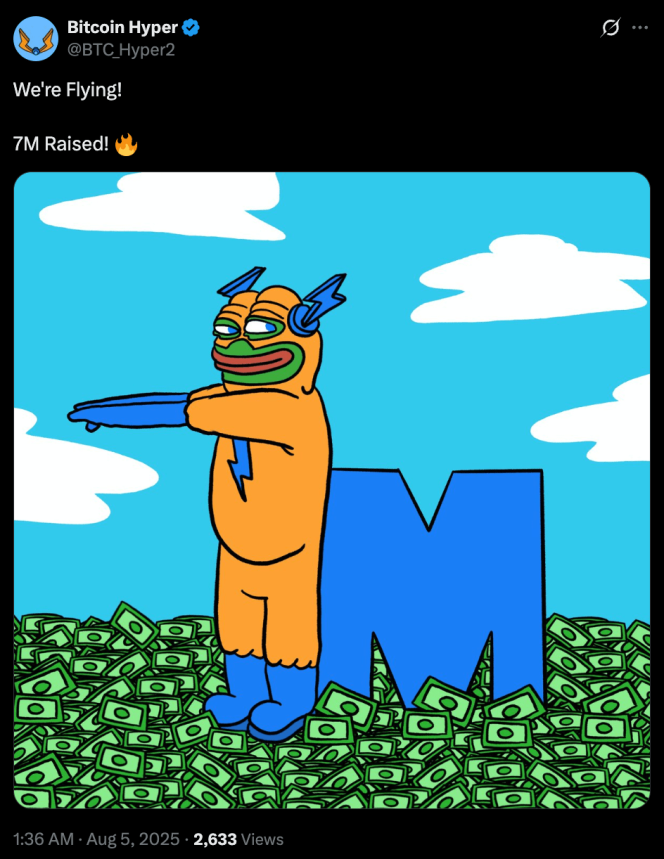 Por otro lado, “Bitcoin Hyper” ha atraído la atención de los pequeños inversores; centrándose en la velocidad, la aplicabilidad real y la interoperabilidad entre cadenas. Este proyecto ha introducido Bitcoin en la era de los contratos inteligentes, las meme coins y las comunidades activas.