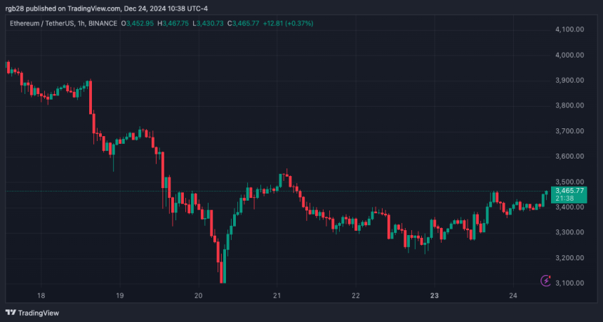 Ethereum (ETH) ha comenzado a ascender algunos niveles después de caer a la zona de soporte de $3.100 la semana pasada. La segunda criptomoneda más grande está intentando liberarse de su tendencia bajista, y algunos observadores del mercado sugieren que está preparada para una carrera masiva en 2025.