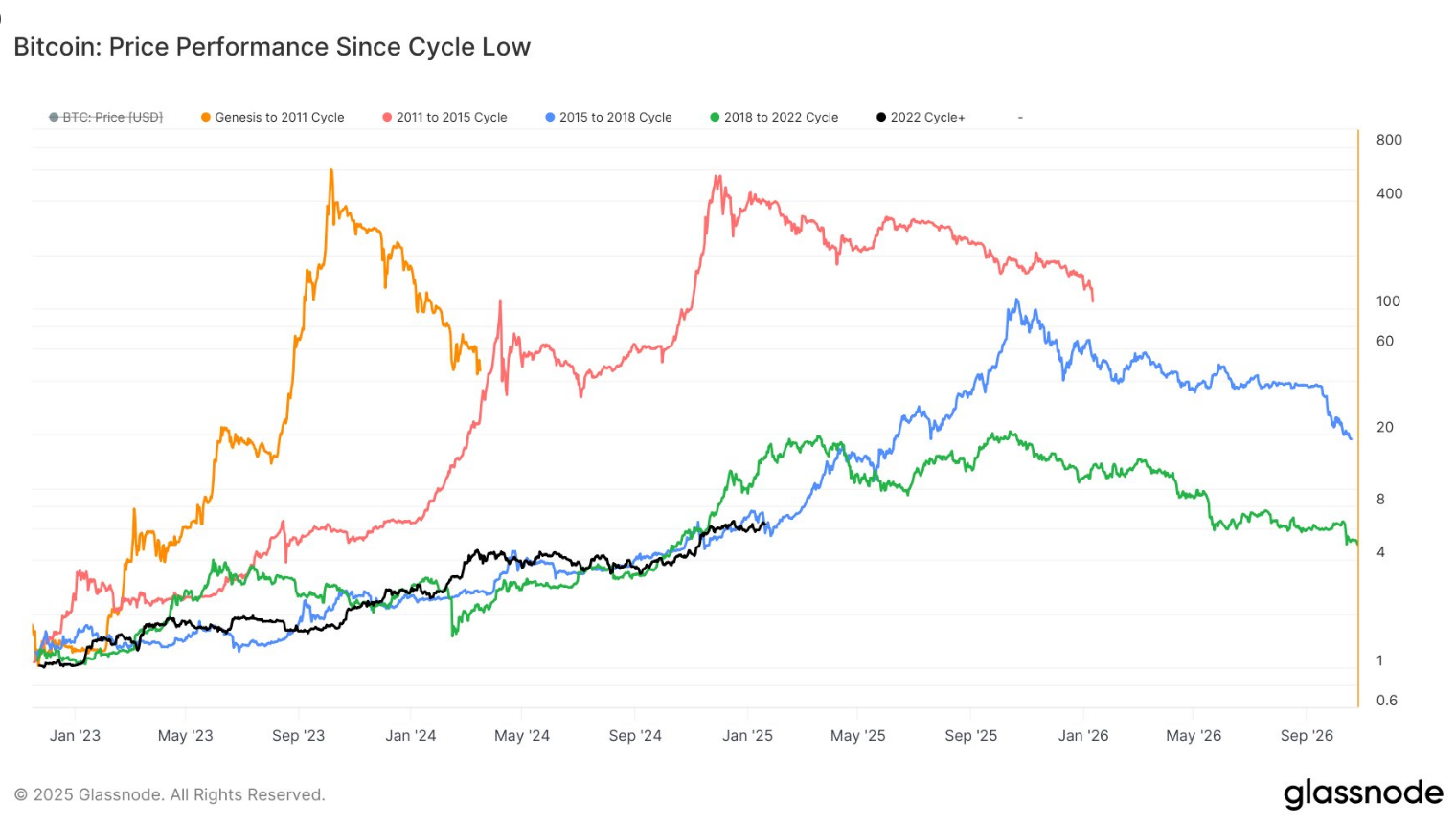 Por el contrario, Glassnode enfatiza las tendencias históricas y señala que la trayectoria actual de Bitcoin corresponde con el ciclo 2015-2018. Bitcoin subió en este ciclo; si la historia se repite, puede subir mucho más.