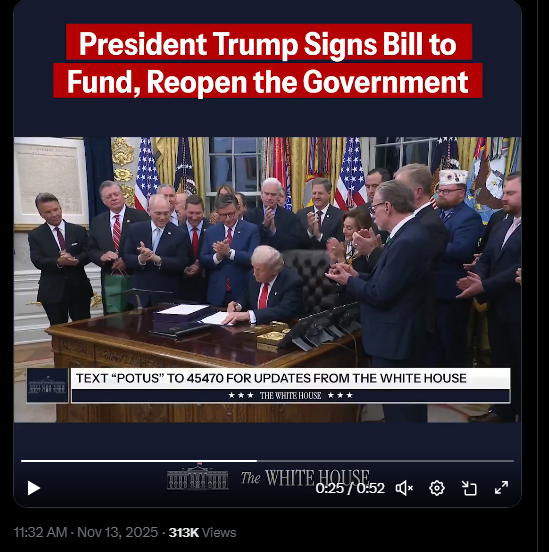 — La Casa Blanca (@WhiteHouse) 13 de noviembre de 2025