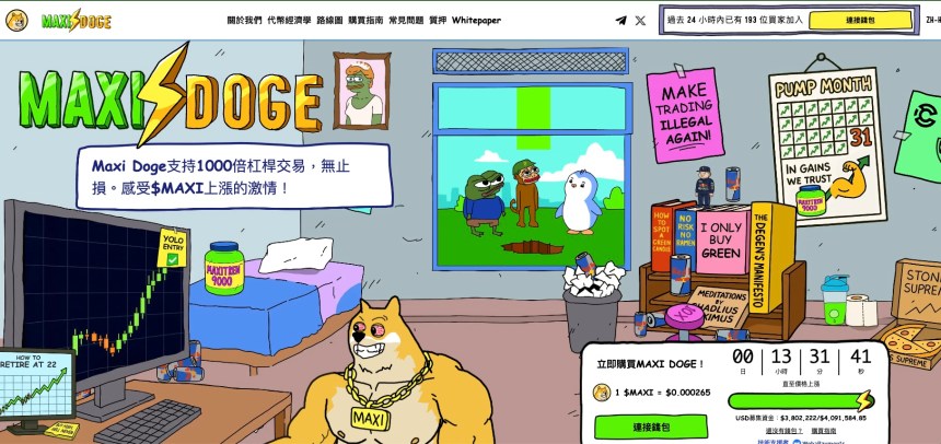 Maxi Doge, con su extrema "perspectiva del mundo de los traders con un apalancamiento de 1000x", se ha convertido en el caballo de batalla de la nueva generación de monedas meme. Inició su preventa en 2025 y recaudó rápidamente más de 4,19 millones de dólares, confirmando la apuesta de más de 9.500 millones de tokens. Ofrece recompensas anualizadas de entre el 76% y el 81%, lo que reduce naturalmente su circulación y aumenta su escasez.